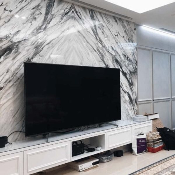 大理石電視牆/牆面可直接提升客廳居家呈現的格調,其獨特的紋路、氣派感、耐用度與設計感,一般電視櫃及水泥建材是無法給予你的。